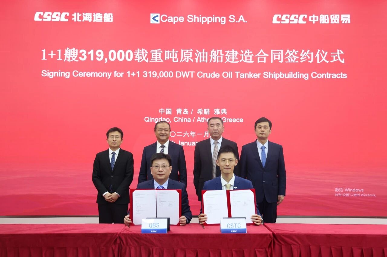 签约仪式在青岛与雅典同步举行,标志着北海造船在绿色大型油船建造领域再次取得重要突破,充分体现了船东对北海造船品牌与油船建造质量的高度认可,也进一步巩固和提升了中船k8凯发k8凯发k8凯发集团在大型油船建造领域的市场份额与全球竞争力。